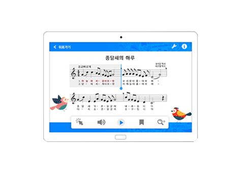 음악 교과서에 있는 곡들을, 반주에 따라 불러가며 학습할 수 있고, 현재 부르는 부분을 마스킹 형태로 표시해주는 등 초중등 학교 학생들의 음악 교과에 최적화된 에듀테크 콘텐츠 입니다.