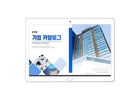 회사의 사업 내용이나 상품 및 서비스 등을 체계적이고 입체적으로 안내해주는 디지털북 형태의 전자 카탈로그로 입니다.